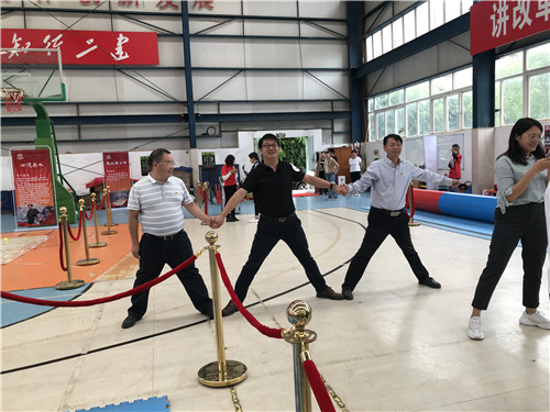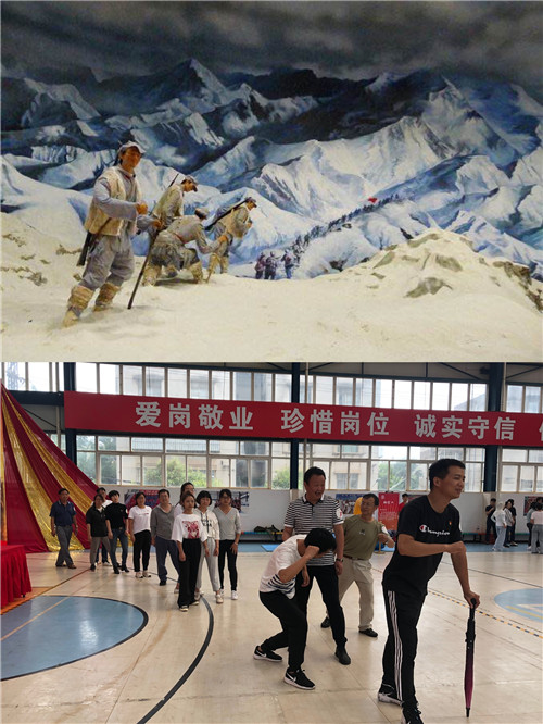 黨課后,參會(huì)人員來到公司籃球館參與主題黨建活動(dòng)?;顒?dòng)根據(jù)長征路線的重要地點(diǎn)和發(fā)生的重要事件,設(shè)置了“翻雪山”、“過草地”、“飛奪瀘定橋”、“遵義會(huì)議”“四渡赤水”、“激戰(zhàn)臘子口”、“三軍會(huì)師”等七個(gè)游戲,參加活動(dòng)的人員隨機(jī)組建成“薪火相傳”、“錚錚鐵骨”、“眾志成城”、“百煉成鋼”、“勇往直前”五支隊(duì)伍參與活動(dòng)。