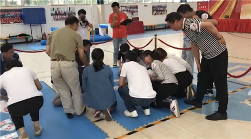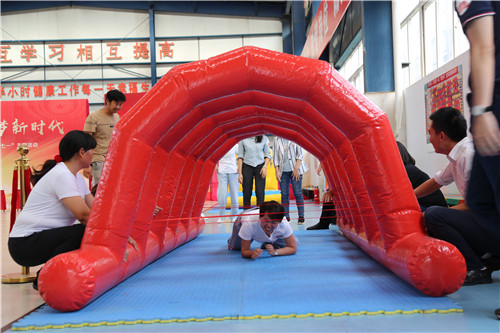 黨課后,參會人員來到公司籃球館參與主題黨建活動。活動根據長征路線的重要地點和發(fā)生的重要事件,設置了“翻雪山”、“過草地”、“飛奪瀘定橋”、“遵義會議”“四渡赤水”、“激戰(zhàn)臘子口”、“三軍會師”等七個游戲,參加活動的人員隨機組建成“薪火相傳”、“錚錚鐵骨”、“眾志成城”、“百煉成鋼”、“勇往直前”五支隊伍參與活動。
