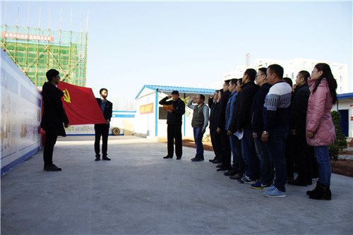 活動中,宜良縣住建局基建管理所到項目現(xiàn)場進行實地查看,并結(jié)合監(jiān)管職能,就項目實體質(zhì)量、安全工作進行技術(shù)指導(dǎo)。兩個支部的黨員代表還結(jié)合此次活動進行交流,并為在12月過政治生日的黨員頒發(fā)“政治生日卡”。活動最后,全體黨員面對黨旗,重溫了入黨誓詞。