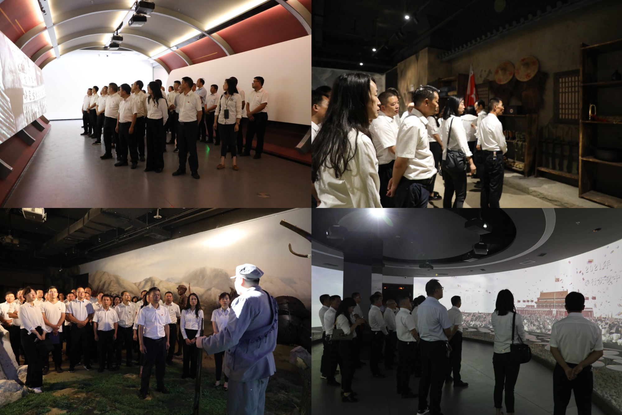 在現(xiàn)場講解員的帶領(lǐng)下,大家依次參觀了時光隧道、沉浸式體驗區(qū)、360度環(huán)幕影廳、5D動感影院、初心講堂等多個展區(qū)。