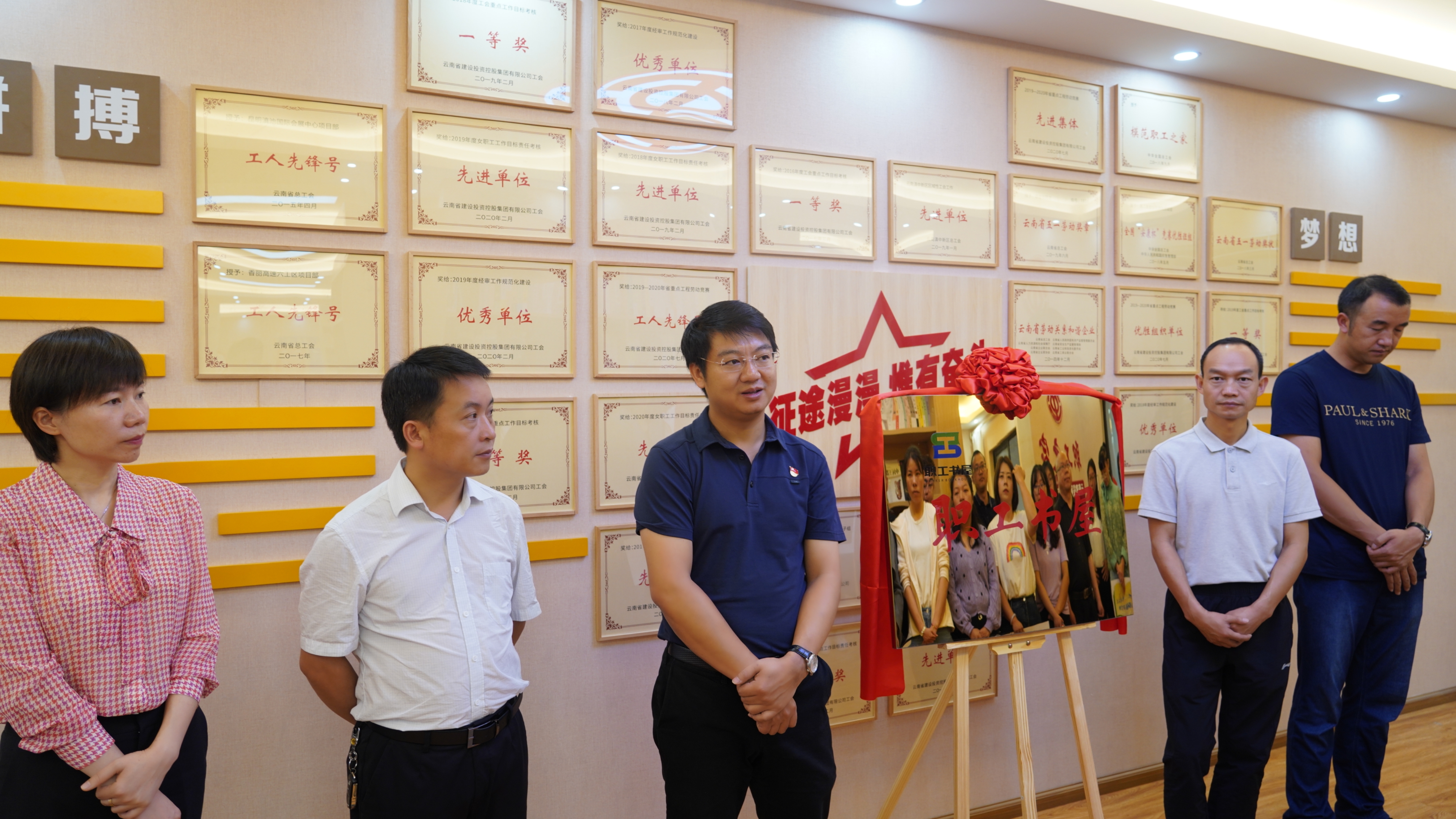 7月6日上午,公司工會(huì)在公司新建成的職工書(shū)屋舉行揭牌儀式,正式啟用職工書(shū)屋。公司黨委書(shū)記、副董事長(zhǎng)萬(wàn)向遵,黨委委員、副總經(jīng)理董學(xué)友,副總經(jīng)理陳本員,副總經(jīng)理臧慶澤,副總經(jīng)濟(jì)師聶德亮為書(shū)屋揭牌。黨委委員、工會(huì)主席胡云紅主持揭牌儀式,各直管部、分公司工會(huì)主席及工會(huì)負(fù)責(zé)人參加儀式。