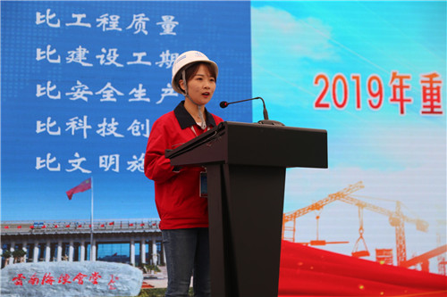 會上,公司工會主席胡云紅宣讀了《公司工會2019年重點項目勞動競賽方案》,公司團委副書記楊欣宣讀了《公司2019年重點項目青年突擊隊競賽活動實施方案》。參賽代表和青年突擊隊代表分別作了表態(tài)發(fā)言,參會領(lǐng)導(dǎo)為所有參賽隊伍和青年突擊隊授旗。