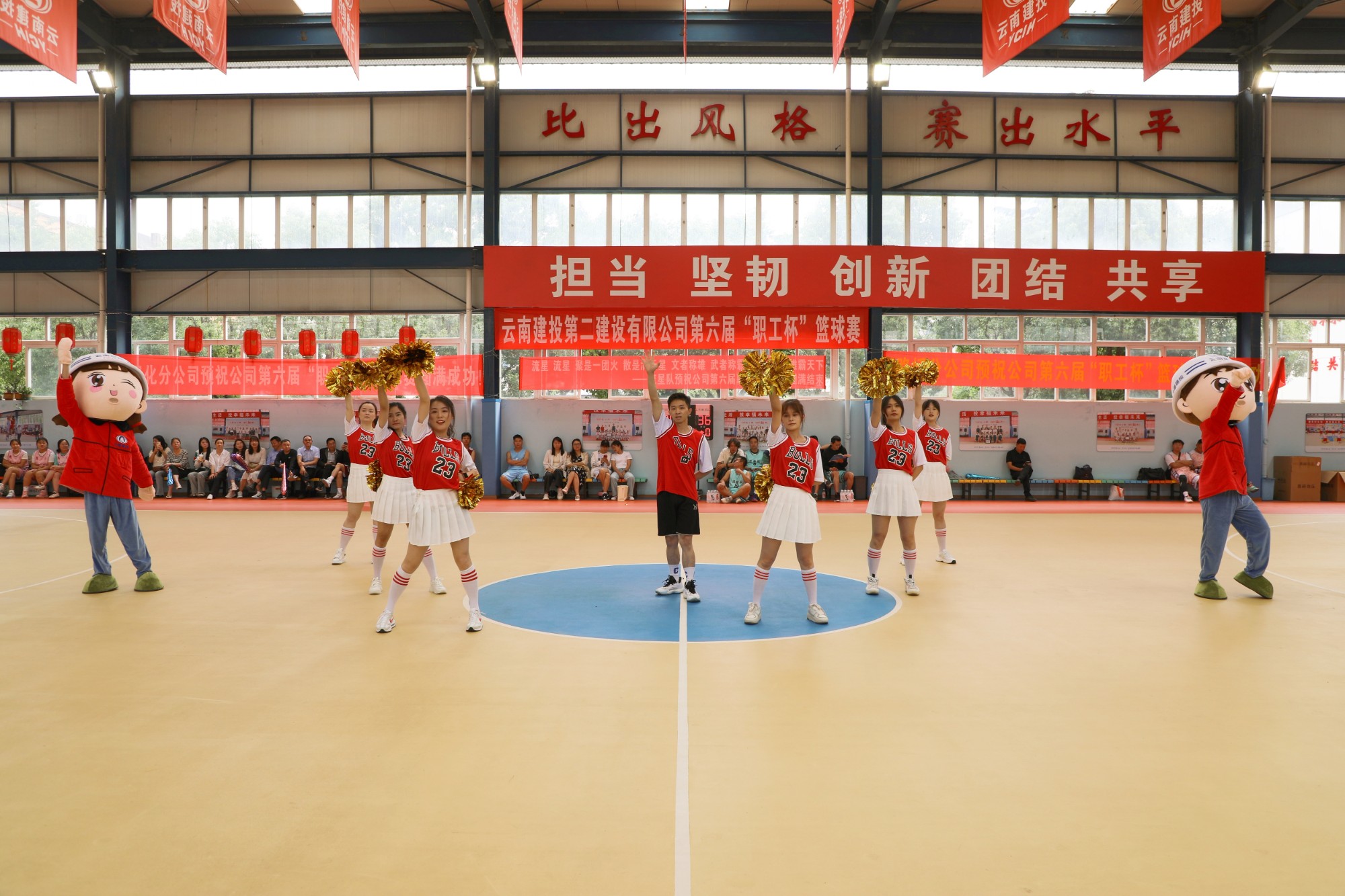 特別編排的二建專屬啦啦操,還有知行兄妹人偶的精彩出演,得到了熱烈的掌聲和尖叫,充分鼓舞了士氣,瞬間點(diǎn)燃了全場(chǎng)。