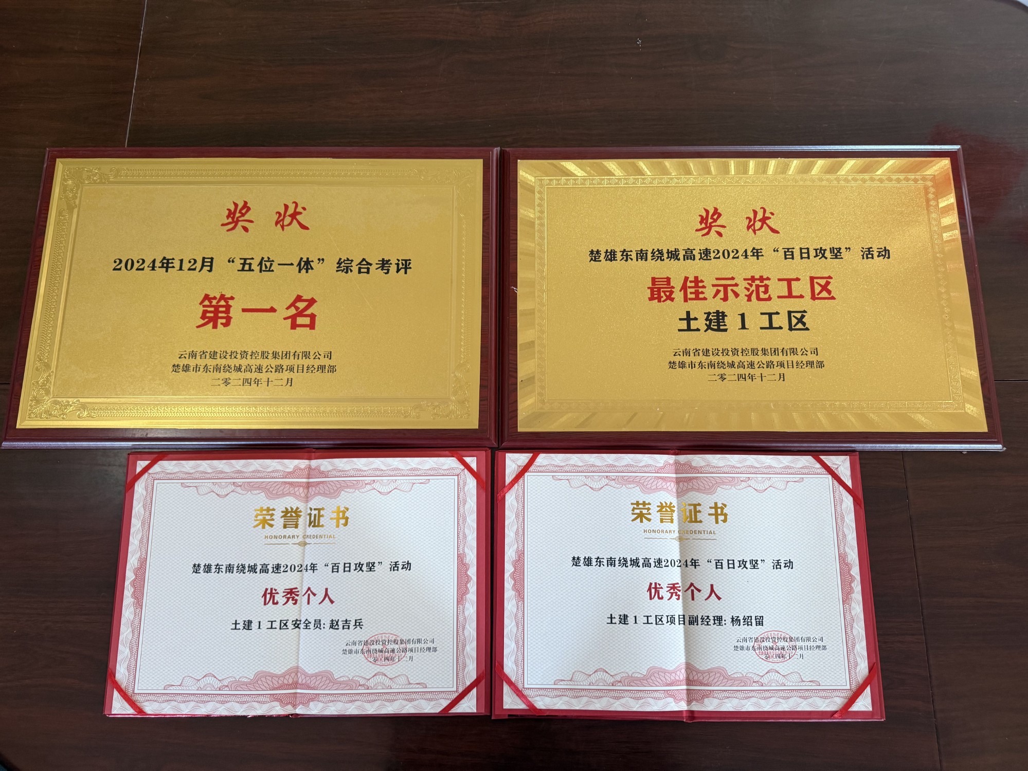 近日,路橋分公司承建的楚雄市東南繞城高速土建1工區(qū)憑借高效的管理和專業(yè)的團隊與過硬的技術,在總承包項目經(jīng)理部組織召開的2024年12月“五位一體”考核評比中以84.97分的優(yōu)異成績榮獲全線第一名。同時,項目也榮獲2024年“百日攻堅”活動最佳示范工區(qū)以及優(yōu)秀項目經(jīng)理、優(yōu)秀個人等多項榮譽。