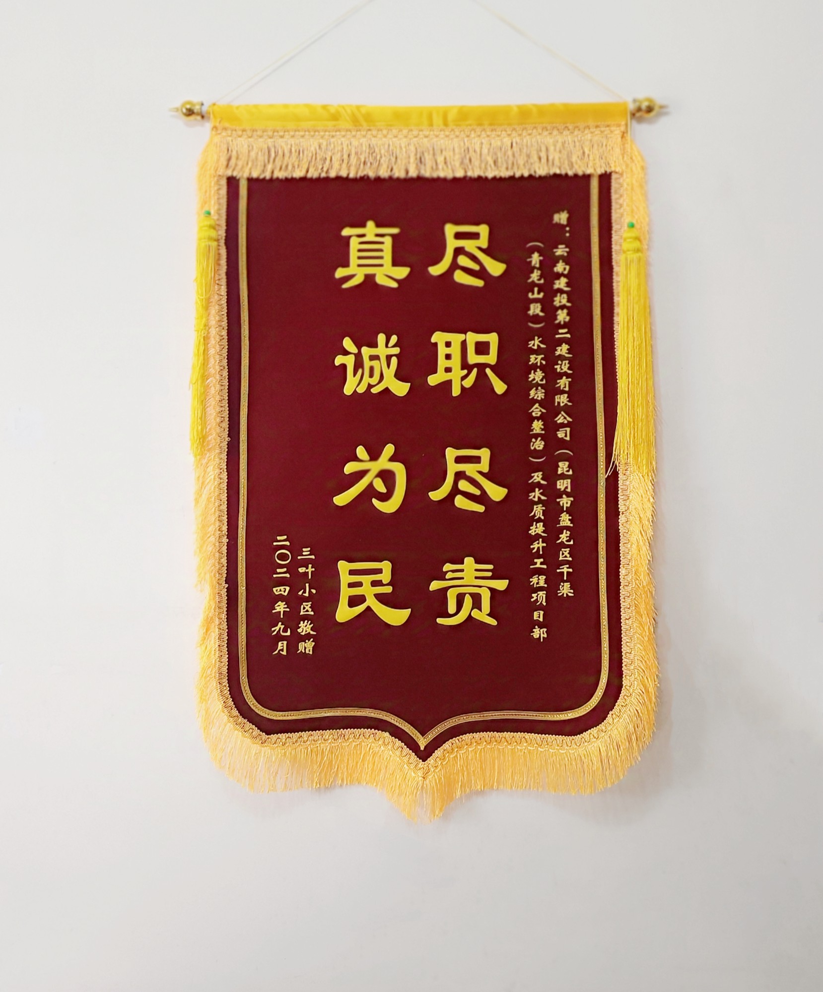 9月9日,第五直管部承建的昆明市盤龍東干渠施工項目收到了來自三葉小區(qū)的一面錦旗,錦旗上印有“盡職盡責、真誠為民”幾個大字,點贊項目團隊高效推進項目建設,為周邊小區(qū)居民生活提供了便利。