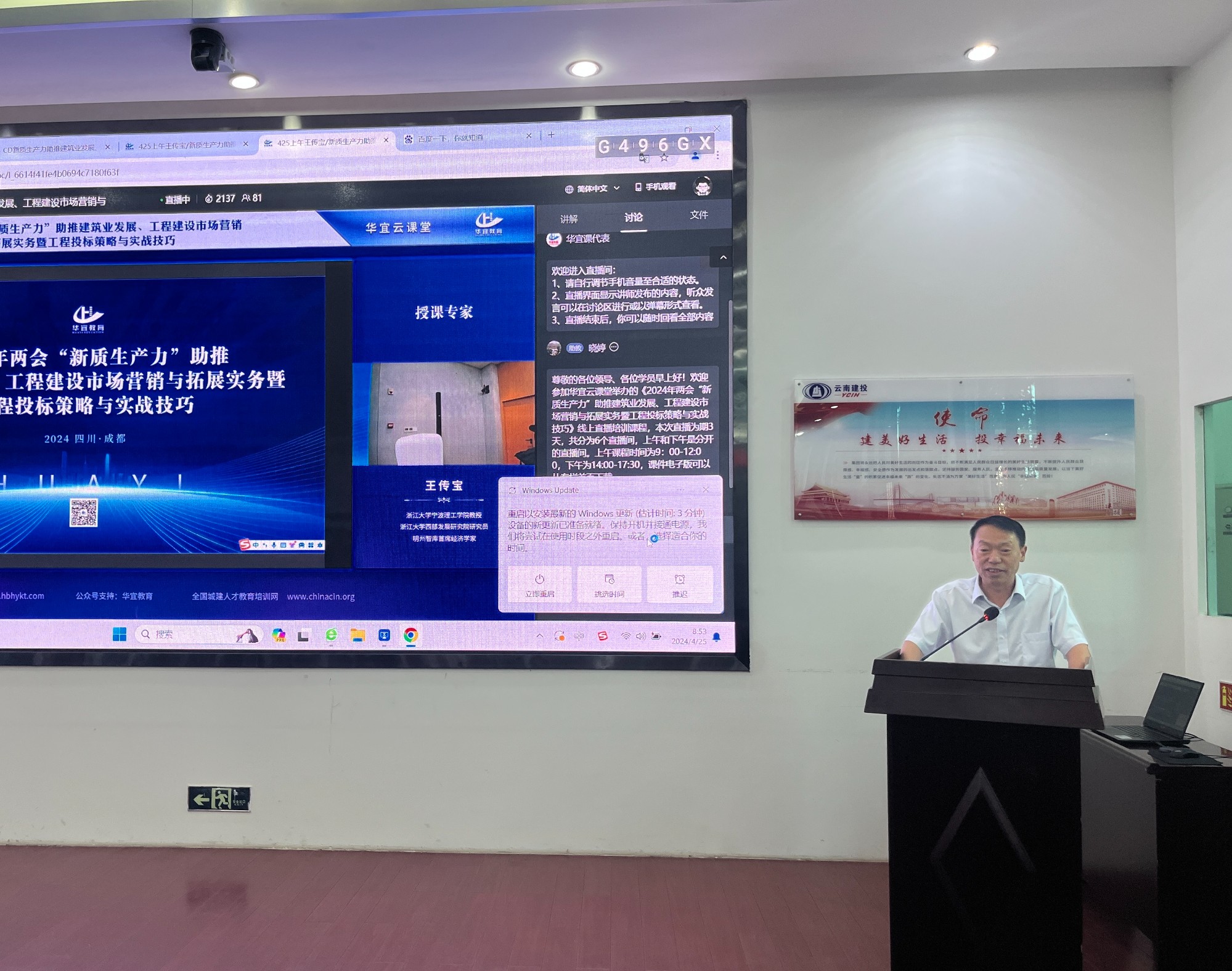 本次培訓(xùn)由北京華宜城建管理咨詢中心邀請具有較高理論水平專家進行培訓(xùn)授課,主要圍繞2024年兩會政策與建筑業(yè)未來發(fā)展、“新質(zhì)生產(chǎn)力”如何更好地助推建筑業(yè)現(xiàn)代化轉(zhuǎn)型、高質(zhì)量發(fā)展等內(nèi)容進行講解,結(jié)合建筑市場開發(fā)與營銷案例進行實操解析,分析工程項目投標風(fēng)險及應(yīng)對策略。