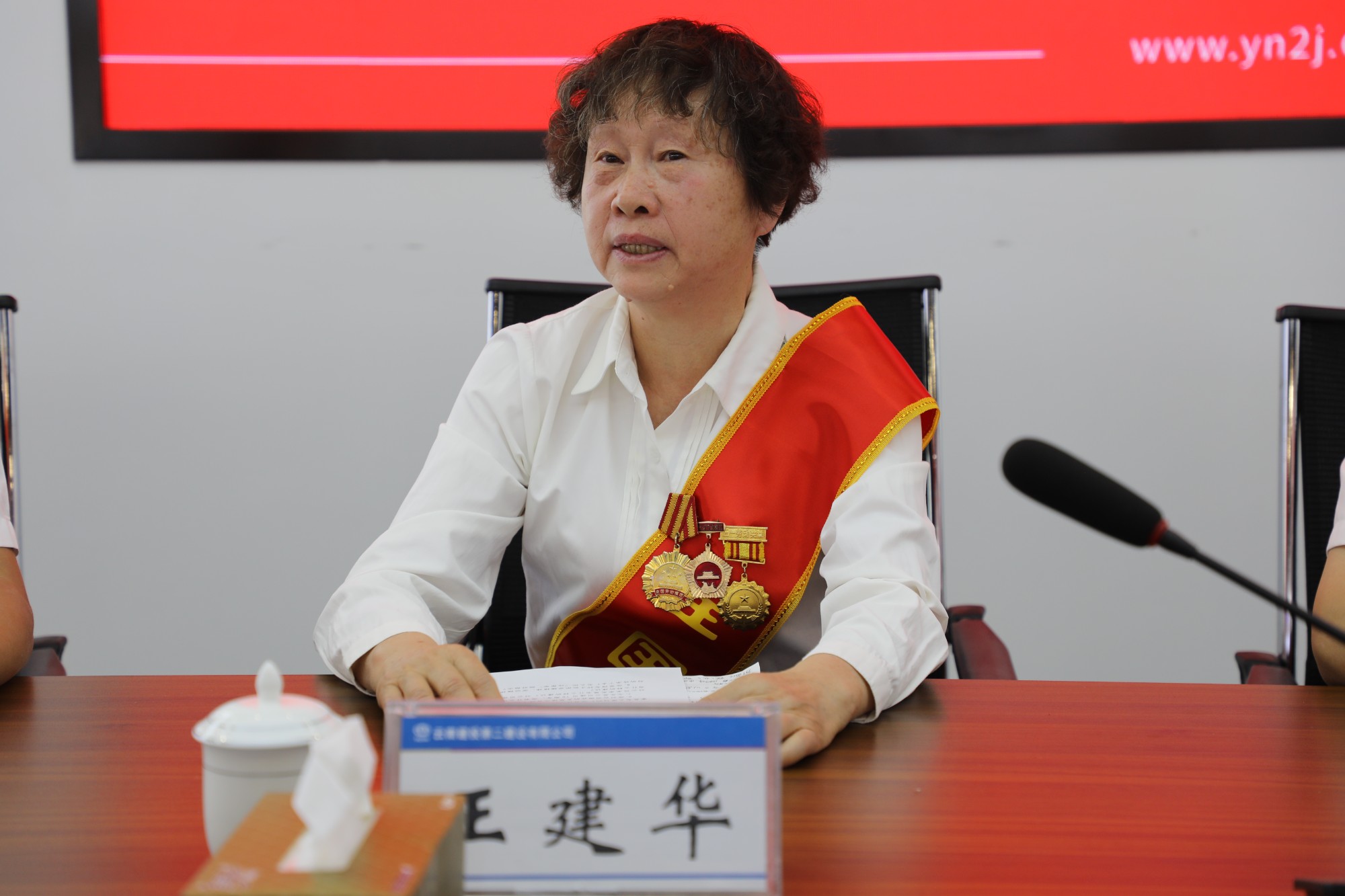 座談會上,勞模們圍繞公司70年發(fā)展歷程和自身工作實際談體會,吐心聲,細致描繪自己眼中的二建。在大紅色的背景裝飾下,現(xiàn)場充斥著喜悅與溫情的氣息。