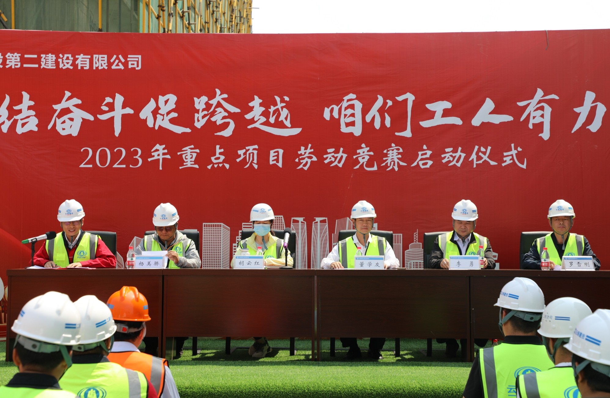 4月17日下午,公司工會在第十直管部楚雄新航鴻雅建設(shè)項目舉行2023年“團結(jié)奮斗促跨越 咱們工人有力量”勞動競賽啟動儀式暨2022年度勞動競賽先進表彰。公司黨委副書記、副董事長、總經(jīng)理董學友,黨委委員、工會主席胡云紅,總經(jīng)理助理、第十五直管部經(jīng)理李勇,安全總監(jiān)羅雪剛出席活動,公司生產(chǎn)管理部、工會辦公室成員,各基層單位工會負責人以及在建項目參賽代表參加啟動儀式。