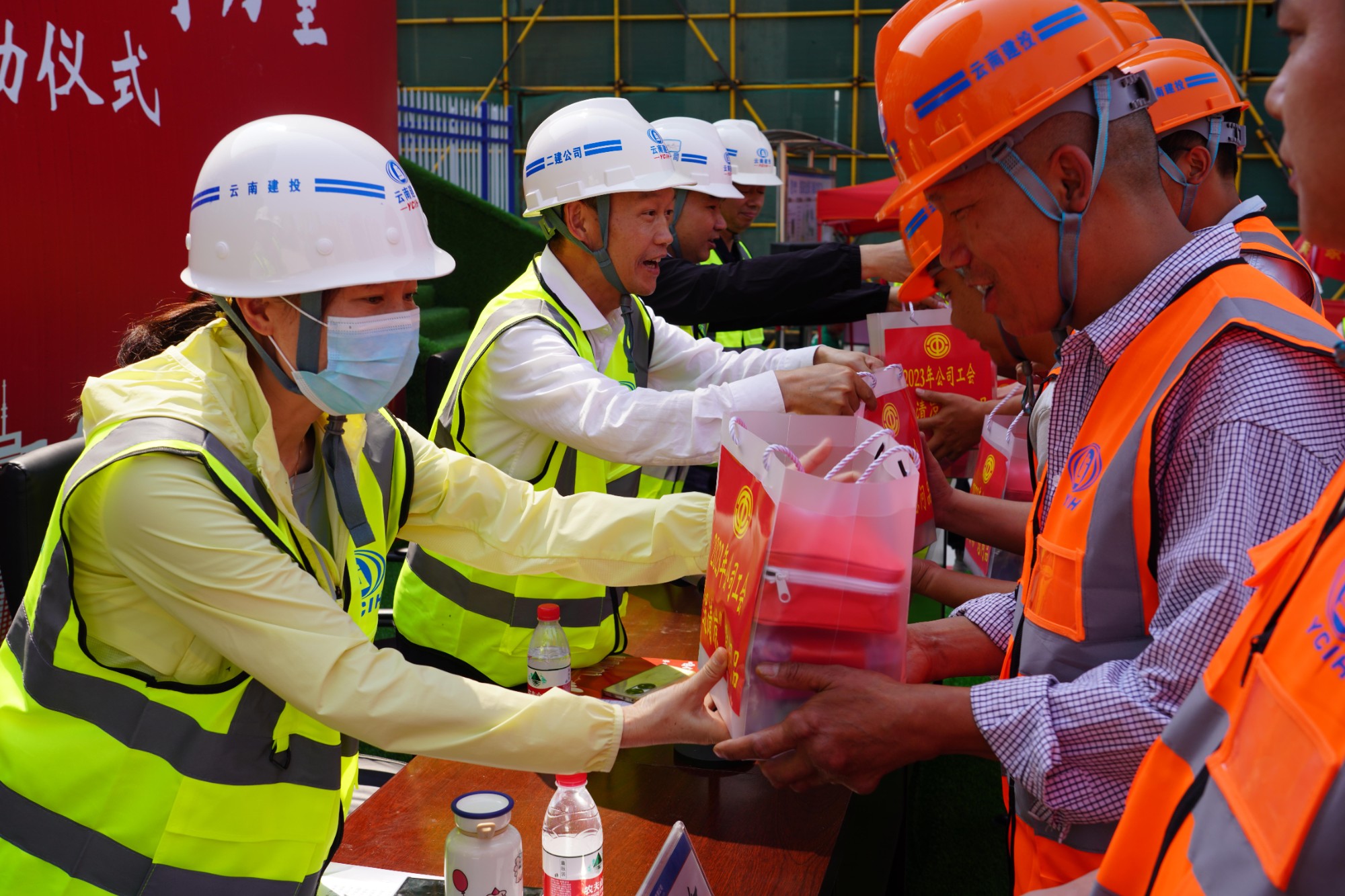 儀式上組織了勞模宣講活動,公司勞模黃天柱按照全國總會、云南省總工會相關(guān)要求,代表廣大產(chǎn)業(yè)工人,結(jié)合自身工作經(jīng)歷,講述了產(chǎn)業(yè)工人奮斗故事,弘揚了勞模精神、勞動精神、工匠精神。參會領(lǐng)導為勞動競賽參賽單位以及青年突擊隊代表授旗,勞動競賽參賽項目代表、獲獎代表分別作了表態(tài)發(fā)言,同時啟動公司2023年“夏送清涼”慰問活動,為項目部及產(chǎn)業(yè)工人代表送上了慰問品。