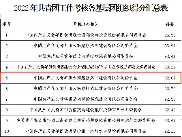 近日,集團團委下發(fā)《關于表彰“2022 年度共青團工作考核先進單位”的決定》,公司團委在集團53個團組織中,以總考核分數(shù)排名第五的成績,較2021年提升7個名次,獲評“2022年度共青團工作考核先進單位”。