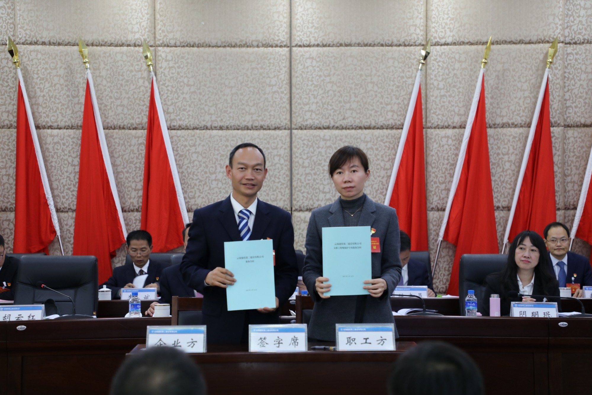 會上,董學友、胡云紅分別代表企業(yè)方和職工方簽訂《2023年集體合同》。