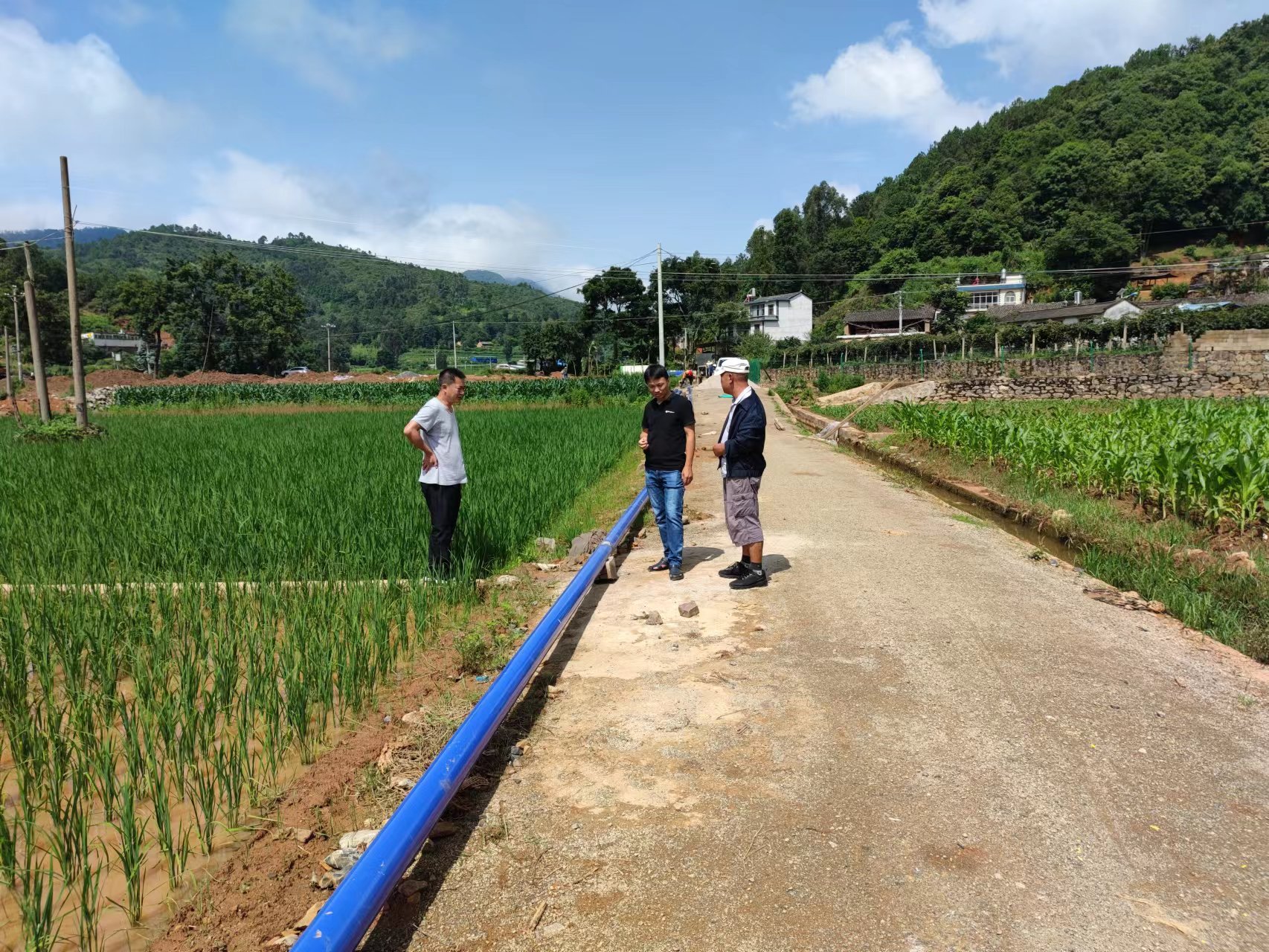 7月6日上午,石屏縣水務(wù)局總工程師莫引玉,龍朋鎮(zhèn)人大主席余衛(wèi)峰,石屏縣澤龍供水有限公司總經(jīng)理何洪祥一行到第一安裝分公司承建的石屏縣龍朋鎮(zhèn)農(nóng)村供水保障專(zhuān)項(xiàng)行動(dòng)項(xiàng)目進(jìn)行調(diào)研。