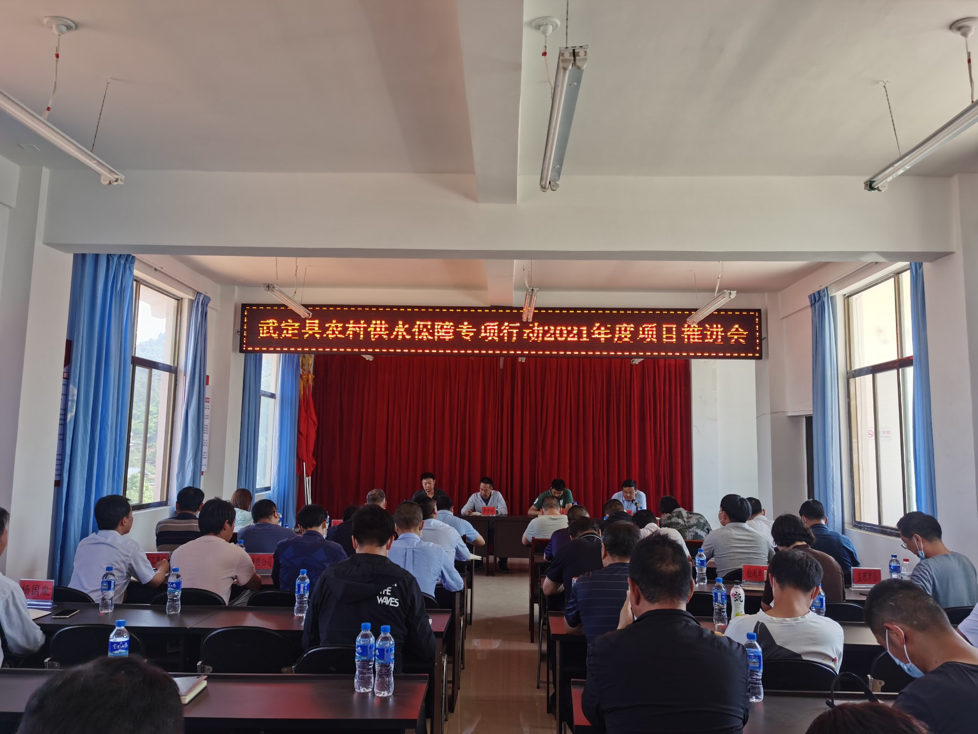 開工儀式圓滿完成后,龔世雄組織本項目各參與單位、部門和人員召開本項目推進會,旨在順利推進本項目的建設,縣政府辦副主任妥自圓主持會議;縣水務局局長余貴銀就如何實施好農(nóng)村供水保障項目作安排,省水投楚雄片區(qū)負責人周鋒對本項目的融資情況進行匯報、講解并表態(tài)發(fā)言,龔世雄圍繞項目建設目的、建設內(nèi)容、如何建設對會議作總結發(fā)言和要求,進一步明確和要求縣、鎮(zhèn)(鄉(xiāng))、村各級部門和人員以及各參建單位的相關事宜。參會的各縣級部門和獅山鎮(zhèn)、高橋鎮(zhèn)、白路鎮(zhèn)、東坡鄉(xiāng)領導作表態(tài)發(fā)言。