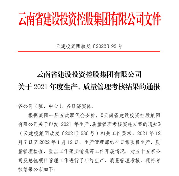 近日,集團(tuán)生產(chǎn)管理部下發(fā)《關(guān)于2021年度生產(chǎn)、質(zhì)量管理考核結(jié)果的通報(bào)》,公司在集團(tuán)55家單位考核中,以排名第八的成績(jī),獲評(píng)集團(tuán)“2021年生產(chǎn)、質(zhì)量考核優(yōu)秀單位”。