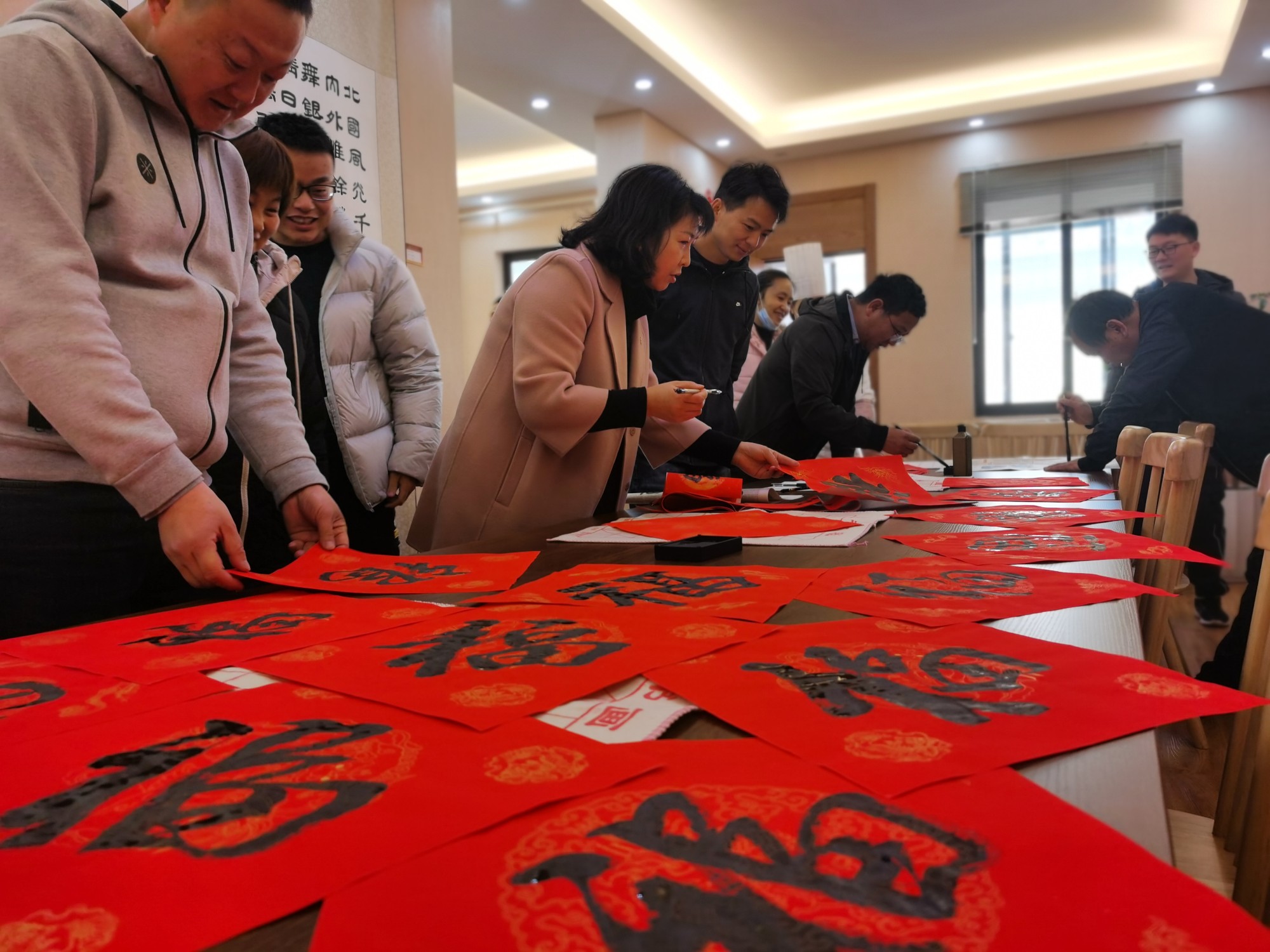 活動內(nèi)容豐富多彩,包括:貼窗花、寫福字、寫春聯(lián)、互送“祝?!钡?。最令大家熱情高漲的莫過于寫福字,隨著文化自信的不斷增強,寫福字、貼春聯(lián)的風(fēng)俗也逐漸煥發(fā)出新的活力,一幅幅對聯(lián)和火紅的福字,讓公司每一位員工們在春節(jié)來臨之際感受到了深深的暖意。趙高仲同職工一起在書屋擺開書案,攤開紅紙,揮毫潑墨,寫福字、寫對聯(lián),紅彤彤的福字和對聯(lián)將現(xiàn)場點綴出濃濃的年味兒。