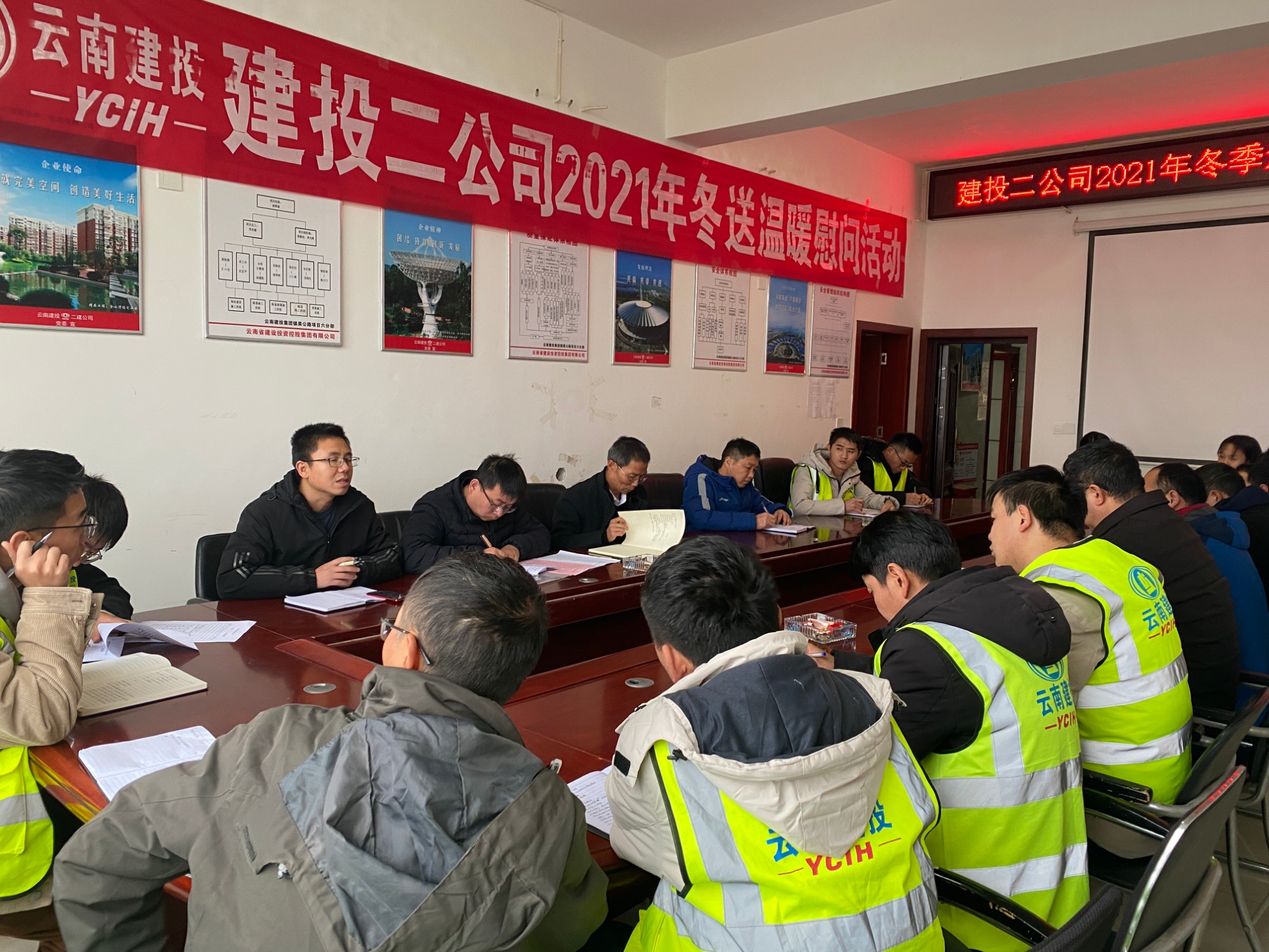 會后,李斌一行對鎮(zhèn)果六分部一線職工進行了關(guān)懷慰問,為項目一線職工發(fā)放慰問品。陳強代表公司黨,政,工,團宣讀了慰問信。