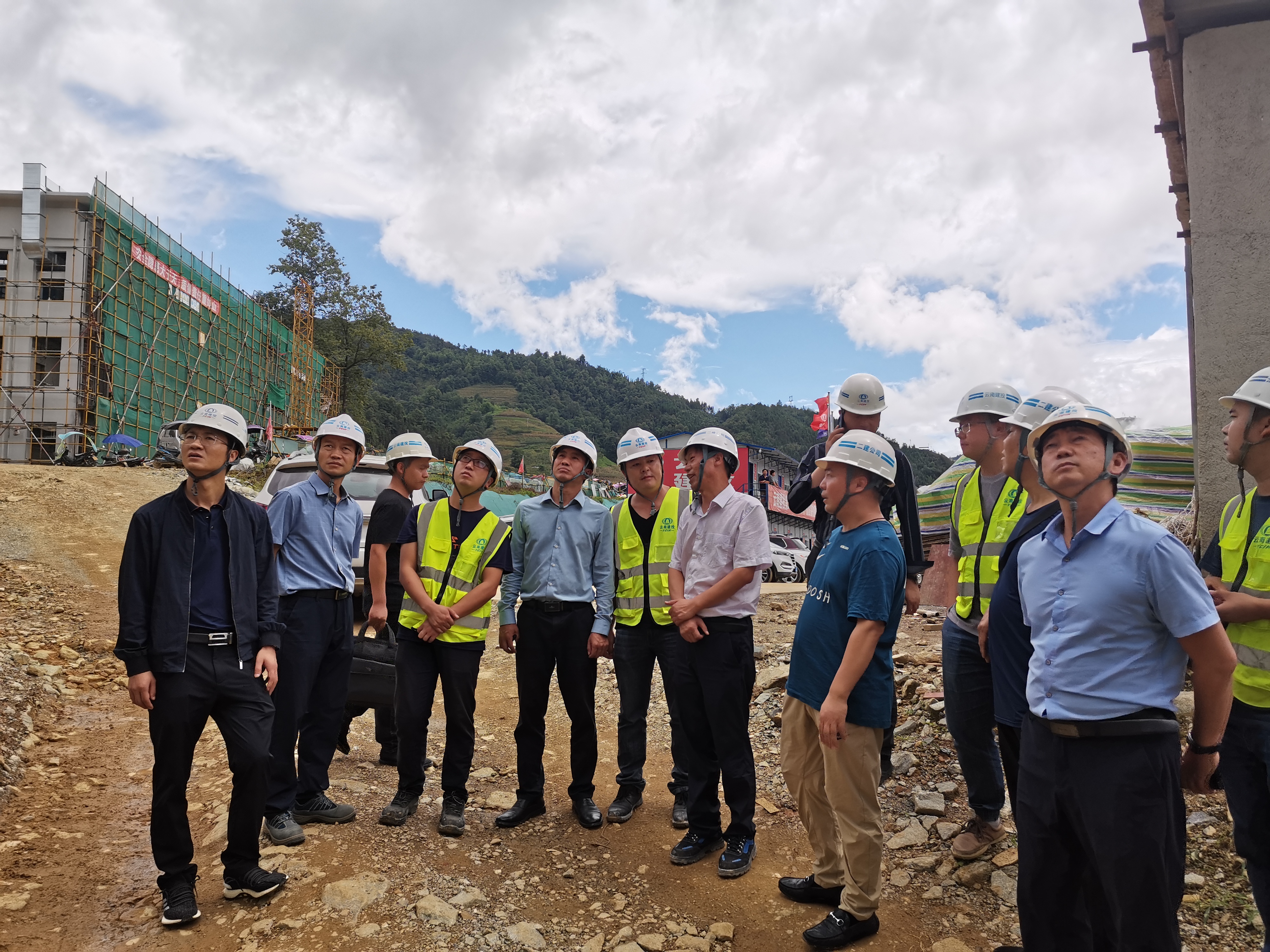 陳定華一行深入施工現(xiàn)場,實地考察金平縣人民醫(yī)院遷建建設(shè)項目現(xiàn)場生產(chǎn)情況,聽取金平片區(qū)各項目負責人的工作匯報,了解項目整體工作推進情況。