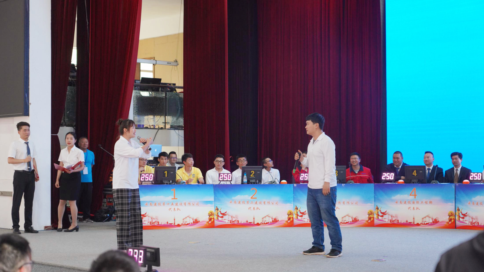 經(jīng)過集團(tuán)“安康杯”知識競賽復(fù)賽的激烈角逐,公司從五十六家集團(tuán)二級單位中脫穎而出,選派三名選手參加決賽。本次競賽活動(dòng)分為必答題、搶答題、風(fēng)險(xiǎn)題,由集團(tuán)工會(huì)和集團(tuán)安全監(jiān)督管理部相關(guān)領(lǐng)導(dǎo)帶領(lǐng)相關(guān)部門組成現(xiàn)場評分裁判對選手的簡答題進(jìn)行現(xiàn)場打分。同時(shí)設(shè)置了觀眾題以增加現(xiàn)場觀眾參與度與趣味性。整個(gè)比賽過程高潮迭起,參賽選手的精彩表現(xiàn)贏得了現(xiàn)場觀眾熱烈的掌聲。