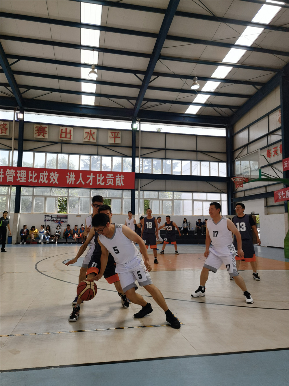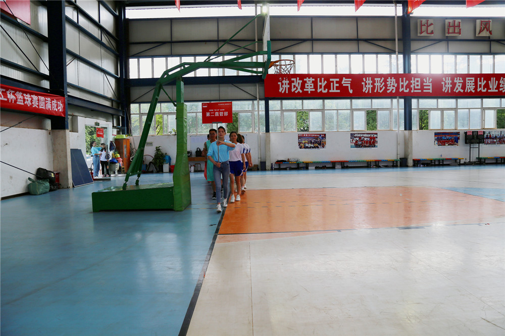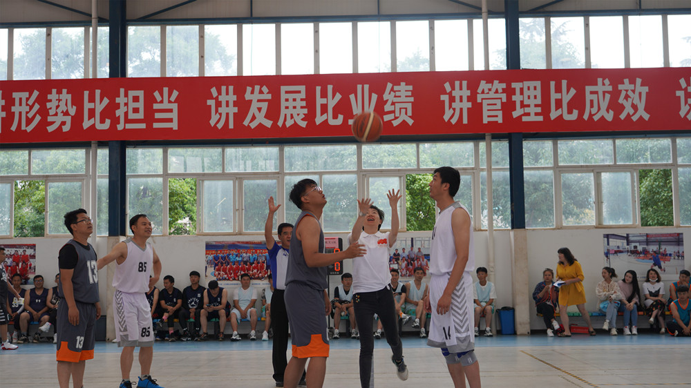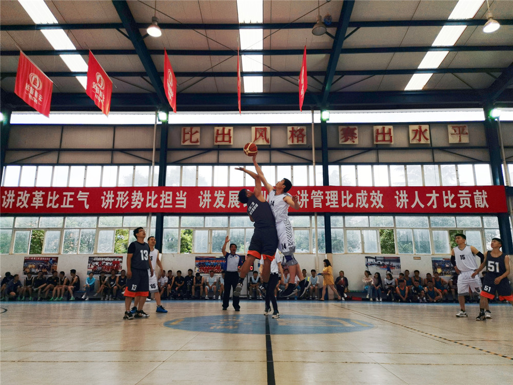 只聽裁判員一聲哨響,比賽開始了。雙方你來我往,比分緊咬,精彩鏡頭不斷上演,搶斷、帶球過人、虛晃、轉(zhuǎn)身、跳投,一整套動作行云流水般一再重現(xiàn),一陣陣喝彩與加油響徹球場內(nèi)外。經(jīng)過激烈角逐,公司機關1隊以43:19贏得了第一場勝利。