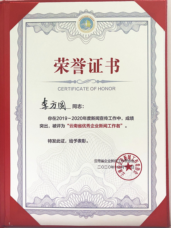 在12月9日至11日舉辦的云南省企業(yè)新聞工作者協(xié)會(huì)2020年會(huì)暨紅塔文化講壇中,公司宣傳工作再次得到了高度贊揚(yáng)與肯定。其中,公司報(bào)刊《知行二建》榮獲2019—2020 年度“云南省優(yōu)秀企業(yè)報(bào)”榮譽(yù)稱號(hào),微信公眾號(hào)“知行二建”榮獲2019—2020 年度“云南省優(yōu)秀企業(yè)新媒體”榮譽(yù)稱號(hào),黨委工作部李方圓榮獲2019—2020 年度“云南省優(yōu)秀企業(yè)新聞工作者”榮譽(yù)稱號(hào)。
