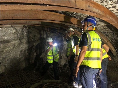 在元綠十三分部檢查時,針對普村1號橋圓柱墩蓋梁穿心棒標高設置以及支撐體系抗滑動和抗偏位措施隨意的問題,陳定華要求必須整改。查看榮村1號隧道后,指出該隧道地質復雜,并且隧道施工方法多次發(fā)生調整(由無中導洞法到中導洞法,再變?yōu)闊o中導洞法),又屬于淺埋連拱隧道,存在較大風險,應嚴格制定方案,突出重難點及預防措施,要求在隧道施工前公司工程技術部要對現(xiàn)場進行指導。