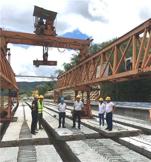 萬向遵深入施工一線,實地查看了項目進展動態(tài),從安全、進度、質(zhì)量、資金等各方面了解了T梁架設(shè)、橋面鋪裝等各種情況,聽取了項目目前整體施工情況、推進存在的突出問題、下一步施工計劃與組織安排的詳細(xì)匯報。萬向遵要求項目部要嚴(yán)格做好高空作業(yè)、高溫天氣及雨季施工的安全防護工作,確保安全生產(chǎn);要抓緊完成施工節(jié)點目標(biāo),保證安全、高效、如期、有質(zhì)量的完成目標(biāo),做到能通則通;要把高速公路建設(shè)與未來發(fā)展相結(jié)合,做到合理規(guī)劃。