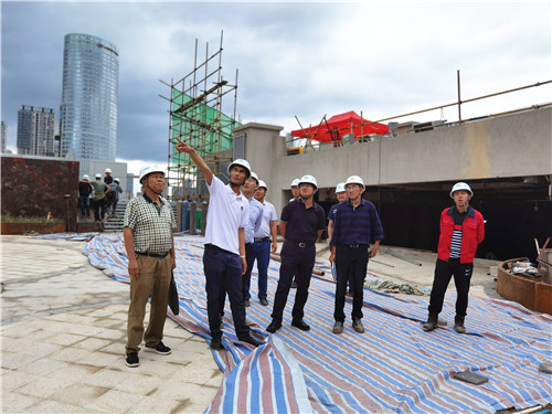一行領導參觀了滇池明珠廣場二期建設項目臨時黨支部黨員活動室并深入施工現(xiàn)場了解項目進展情況。先后查看了大商業(yè)屋頂綠化花園、各樓層、室外管網(wǎng)等施工現(xiàn)場,了解項目各專業(yè)之間的配合、項目的整體工程進度、工程質(zhì)量控制、BIM技術運用、安全管理工作等方面的情況。