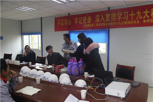 公司黨委工作部相關(guān)人員解讀黨的十九大報(bào)告并開展黨的十九大相關(guān)知識(shí)問答活動(dòng),給搶答正確的員工送上小獎(jiǎng)品。黨員李俊馳拿到的獎(jiǎng)品最多,他說:“我在廠里面工作的同時(shí),也關(guān)注和學(xué)習(xí)黨的十九大精神,提的問題我很多都會(huì),黨的十九大跟我們的工作生活息息相關(guān),作為黨員,我們要發(fā)揮好先鋒模范帶頭作用,把學(xué)習(xí)好宣傳好黨的十九大精神引向深入到我們周圍”。