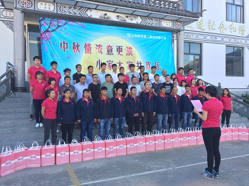 “喜迎中秋慶團(tuán)圓,歡樂笑語萬里傳”,在中國(guó)傳統(tǒng)佳節(jié)“中秋節(jié)”來臨之際。公司常務(wù)副總經(jīng)理馬兵、工會(huì)主席胡云紅、副總經(jīng)理董學(xué)友帶領(lǐng)公司工會(huì)到大理環(huán)湖截污、香麗高速、昭通昭陽區(qū)、玉溪大戛高速、紅河元蔓高速等項(xiàng)目開展2017年中秋慰問活動(dòng),并代表公司及公司領(lǐng)導(dǎo)班子感謝節(jié)日期間仍然堅(jiān)守在施工一線的高原鐵軍們,為他們送上節(jié)日的祝福及問候。