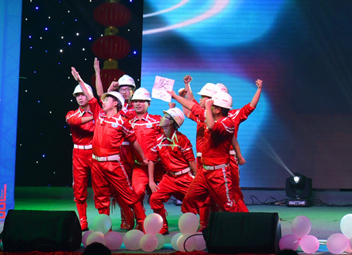 當(dāng)天的晚會共分為《心起航》、《夢飛揚》兩個篇章,經(jīng)過一個多月的緊張編排,來自公司各單位自編自導(dǎo)的23個節(jié)目悉數(shù)登場,節(jié)目形式豐富多樣,小品、三句半、詩歌朗誦、爵士舞、肚皮舞、小合唱、葫蘆絲演奏……,公司領(lǐng)導(dǎo)班子全體成員也親自上臺,為大家?guī)硪唤M歌曲串燒,將整臺晚會推向最高潮。一個個精彩節(jié)目的輪番上演,讓臺下觀眾看得目不暇接,部分節(jié)目內(nèi)容還與建工人的日常工作生活相結(jié)合,更是引得現(xiàn)場掌聲與歡呼聲此起彼伏。晚會將集團(tuán)“愛崗敬業(yè)、珍惜崗位;誠實守信、依法經(jīng)營”企業(yè)文化理念貫穿其中,以藝術(shù)形式真實反映了公司2015年所取得的成就,展現(xiàn)了全體二建人團(tuán)結(jié)務(wù)實、積極進(jìn)取、奮發(fā)向上的精神面貌,更寄托了全司干部職工對2016年再創(chuàng)輝煌的信心與期望。