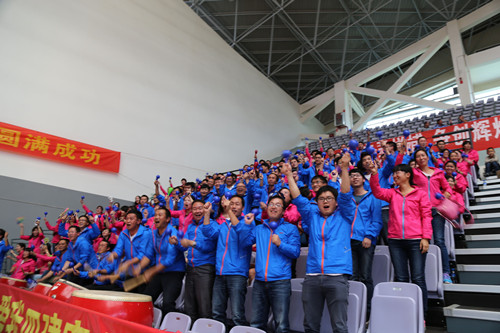 除了賽場(chǎng)上作戰(zhàn)的隊(duì)員們外,我們的的團(tuán)隊(duì)里還有一群可愛的人,那就是公司的啦啦隊(duì)員和后勤保障隊(duì)員。此次比賽,公司領(lǐng)導(dǎo)班子成員到現(xiàn)場(chǎng)為公司參賽隊(duì)員鼓勁、加油,與從公司各職能部門及各直管部抽調(diào)來的一百多名員工組成強(qiáng)大的啦啦隊(duì)陣容,成為比賽隊(duì)員們最強(qiáng)大的支援團(tuán)隊(duì)。在比賽中,啦啦隊(duì)方陣為比賽隊(duì)員們吶喊、助威,熱情高漲、氣勢(shì)如虹,聲音響徹了整個(gè)球館。他們始終與賽場(chǎng)上的隊(duì)員們站在同一戰(zhàn)線上,共同努力,因?yàn)樗麄兌紝儆谠颇隙ㄟ@個(gè)大家庭,他們的努力都是為了云南二建這個(gè)團(tuán)隊(duì)的發(fā)展壯大。