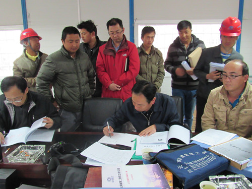 督查組現(xiàn)場對施工棟號的實體質(zhì)量進行檢查,隨機抽查了C-03棟混凝土強度等級、原材料報驗及內(nèi)業(yè)資料,檢驗其是否與現(xiàn)場同步,并重點檢查現(xiàn)場五方責(zé)任主體資質(zhì)、合同等內(nèi)容。在督查過程中,各位專家、領(lǐng)導(dǎo)結(jié)合現(xiàn)場發(fā)現(xiàn)的施工中存在的問題進行認真分析,并就解決辦法提出建議,項目部全體管理人員認真聽取專家點評,并當場表示將盡快著手整改,確保工程施工質(zhì)量,力促昭通棚改項目能夠成功申報國家安全文明“AAA”工地和云南省優(yōu)質(zhì)工程。
